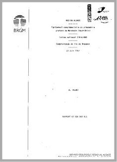H 1 REGION ALSACE.EQUIPEMENT COMPLEMENTAIRE DU PIEZOMETRE PROFOND DE MERXHEIM,68.INDICE NATIONAL 318-6-080.COMPTE RENDU DE FIN DE TRAVAUX