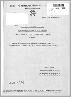 H 1 Contribution à l'étude de la nappe aquifère des Grès du Trias inférieur dans la région de Vittel Contrexeville Lamarche (Vosges).