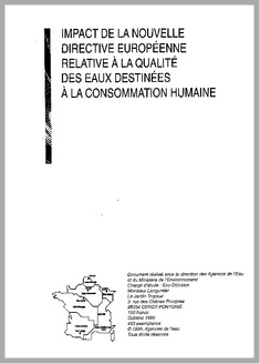 L'OBJET DE CETTE ETUDE EST D'APPORTER AUX AGENCES DANS LE CADRE DE LA PREPARATION DE LEUR 7EME PROGRAMME UNE EVALUATION DES CONSEQUENCES DU CHANGEMENT DE LA DIRECTIVE EUROPEENNE. CE CHANGEMENT AURA DE NOMBREUSES REPERCUSSIONS SUR LES SERVICES DE DISTRIBUTION D'EAU POTABLE ET SUR LES COLLECTIVITES LOCALES EGALEMENT
