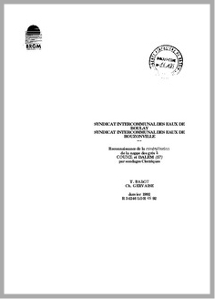H 1 SYNDICAT INTERCOMMUNAL DES EAUX DE BOULAY,SYNDICAT INTERCOMMUNAL DES EAUX DE BOUZONVILLE.MOSELLE.RECONNAISSANCE DE LA MINERALISATION DE LA NAPPE DES GRES A COUME ET DALEM PAR SONDAGES ELECTRIQUES.MOSELLE