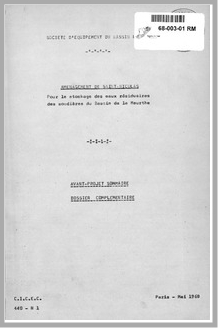 H 1 Aménagement de Saint Nicolas de Port pour le stockage des eaux résiduaires des soudières du bassin de la Meurthe. Avant projet sommaire. Dossier complémentaire.