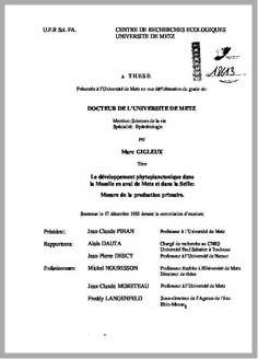 H 1 LE DEVELOPPEMENT PHYTOPLANCTONIQUE DANS LA MOSELLE EN AVAL DE METZ ET DANS LA SEILLE.MESURE DE LA PRODUCTION PRIMAIRE