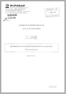 DDAF HAUT RHIN;BURGEAP;COMMUNE DE MOOSLARGUE