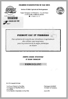 H 1 Piémont Eau et Terroirs. Une opération de conseils aux viticulteurs et agriculteurs des collines sous vosgiennes pour la protection de la nappe phréatique en Alsace. Compte-rendu d'activités et bilan financier. Exercice 1997