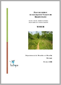 H 1 Plan de gestion écologique du vallon de Bellefontaine (54). Tome 3 : faune, flore, milieux naturels, propositions d'aménagements