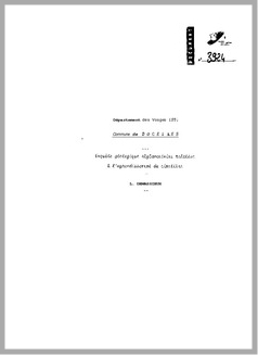 H 1 Enquête géologique règlementaire relative à l'agrandissement du cimetière. Commune de Docelles. Vosges