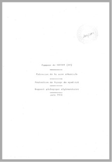 H 1 EXTENSION DE LA ZONE URBANISEE. PROTECTION DU FORAGE DU SYNDICAT.RAP PORT GEOLOGIQUE REGLEMENTAIRE. COMMUNE DE SOUCHT (MOSELLE).