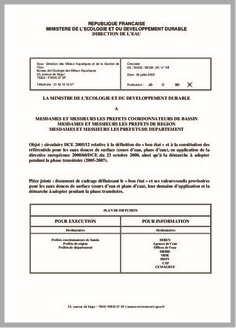 H 1 Circulaire DE/MAGE/BEMA 05/N°14 relative à la circulaire DCE 2005/12 relative à la définition du " bon état " et à la constitution des référentiels pour les eaux douces de surface (cours d'eau, plans d'eau), en application de la directive européenne 2000/60/DCE du 23 octobre 2000, ainsi qu'à la démarche à adopter pendant la phase transitoire (2005-2007).