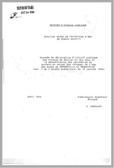 H 1 Demande de déclaration d'utiltié publique des travaux de dérivaion des eaux et la détermination des périmètres de protection autour des captages de l'eau des mines de Serrouville et Errouville. Syndicat Mixte de production d'eau de Fensch Moselle. Rapport d'enquête publique