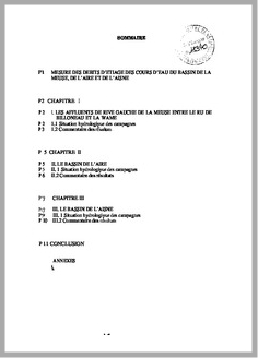 H 1 CATALOGUE DES DEBITS D'ETIAGE DES COURS D'EAU DES BASSINS DE LA MEUSE DE L'AIRE ET DE L'AISNE