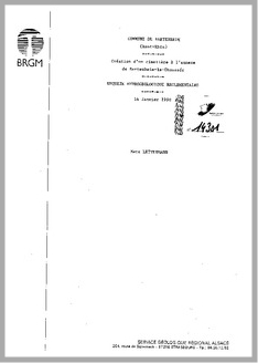 H 1 COMMUNE DE BARTENHEIM (HAUT-RHIN).CREATION D'UN CIMETIERE A L'ANNEXE DE BARTENHEIM LA CHAUSSEE.ENQUETE HYDROGEOLOGIQUE REGLEMENTAIRE.