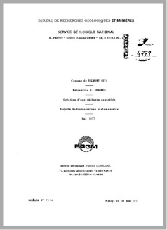 H 1 Création d'une décharge contrôlée. Entreprise R. Kraemer. Commune de Valmont. Moselle. Enquête hydrogéologique réglementaire