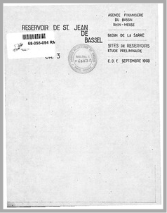 H 1 Bassins de la Moselle et de la Chiers. Sites de réservoirs. Etude préliminaire. Tome 2 Monographies. Bassin de la Sarre. Réservoir de Saint Jean de Bassel.