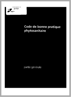 H 1 CODE DE BONNE PRATIQUE PHYTOSANITAIRE. PARTIE GENERALE