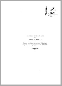 H 1 Enquête géologique concernant l'épandage de purin pour la porcherie de M. Frequelin. Commune de Humes. Haute Marne