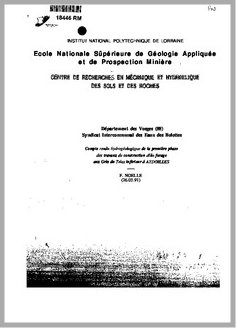H 1 COMPTE RENDU HYDROGEOLOGIQUE DE LA PREMIERE ET DEUXIEME PHASE DES TRAVAUX DE CONSTRUCTION D'UN FORAGE AU GRES DU TRIAS INFERIEUR A AYDOILLES (VOSGES).