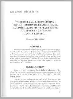 H 1 Etude de la vallée d'Anderny : reconstitution de l'évolution de la limite de bassin versant entre la Moselle et la Moselle dans le Pays Haut.