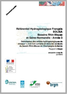 H 1 Référentiel hydrogéologique français BDLISA. Bassins Rhin Meuse et Seine Normandie. Année 3. Délimitation des entités hydrogéologiques de niveaux 1,2 et 3 en Lorraine et dans les secteurs du bassin Rhin Meuse en Champagne Ardenne. Rapport d'étape