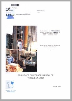 H 1 AMELIORATION DE L'ALIMENTATION EN EAU POTABLE DES COMMUNES DE THONNELA LONG,AVIOTH,BREUX,VERNEUIL,PETIT.DEPARTEMENT DE LA MEUSE.ETUDE D'UNE NOUVELLE RESSOURCE EN EAU SOUTERRAINE.RESULTATS DU FORAGE D'ESSAI DE THONNE LA LONG