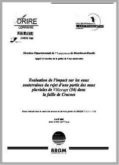 H 1 Evaluation de l'impact sur les eaux souterraines du rejet d'une partie des eaux pluviales de VILLERUPT (Meurthe et Moselle) dans la faille de Crusnes.