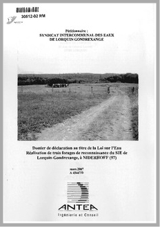 H 1 Dossier de déclaration au titre de la Loi sur l'Eau Réalistion de trois forage de reconnaissance du Syndicat Intercommunal des Eaux de Lorquin Gondrexange, à Niederhiff. Moselle. Spécifications techniques des forages