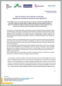 H 1 Communiqué de presse - Rejets de chlorures dans la Moselle et la Meurthe : déploiement d'un pilote de traitement à titre expérimental