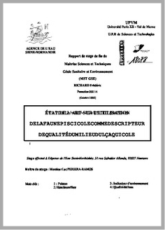 H 1 ETAT DE L'ART SUR L'UTILISATION DE LA FAUNE PISCICOLE COMME DESCRIPTEUR DE QUALITE DU MILIEU DULCAQUICOLE. RAPPORT DE STAGE