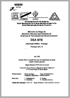 H 1 EROSION DIFFUSE ET QUALITE DES EAUX DE RUISSELLEMENT DE PETITS BASSINS VERSANTS AGRICOLES.MEMOIRE DEA.