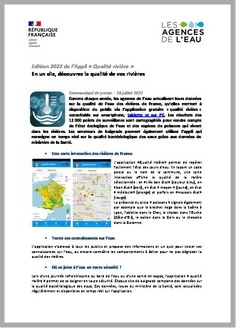 H 1 Communiqué de Presse - Edition 2022 de l'Appli "Qualité rivière". En un clic, découvrez la qualité de vos rivières